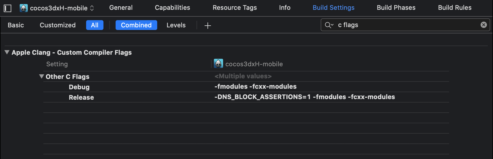 -fmodulesand-fcxx-modulesflags under theOther C Flagssection in both Debug and Release. Be careful while adding these flags in Debug and Release, because if you override the default flags you might face build errors. TheOther C Flagssection would look this after adding mentioned flags:
