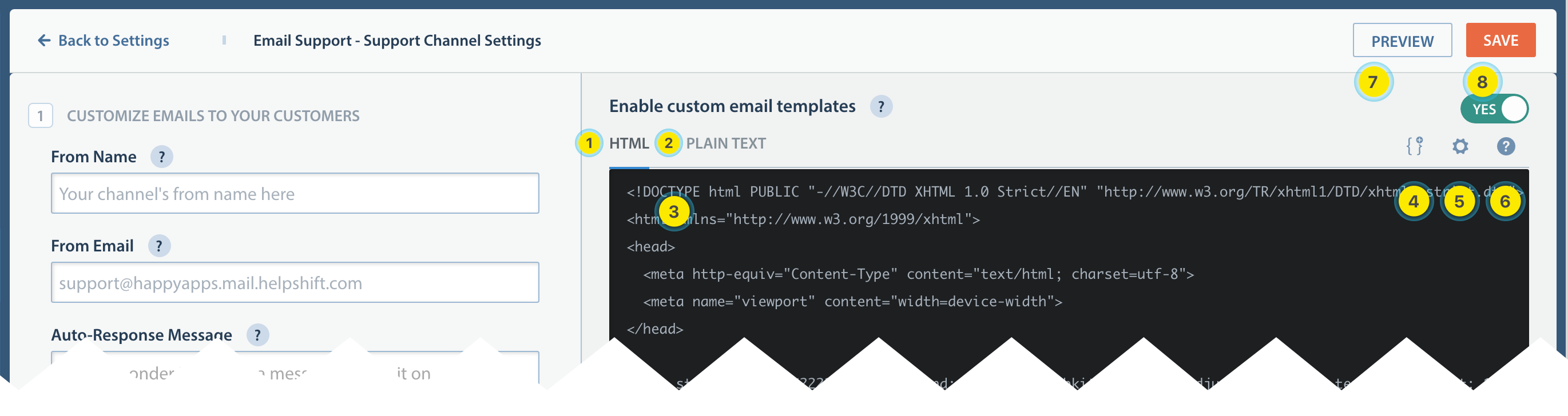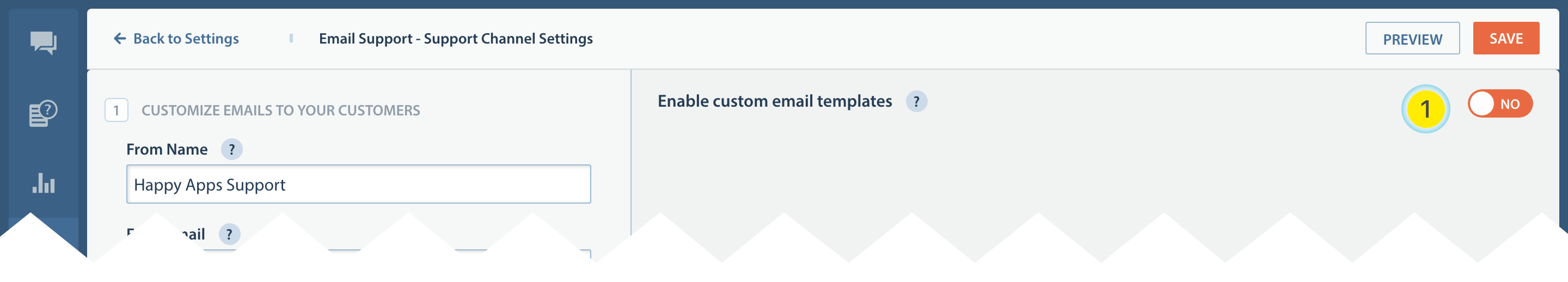Goto the email support channel that you want to enable custom email templates for, and turn ON the custom templates toggle -