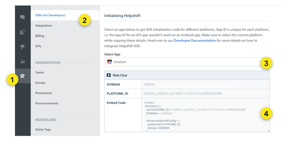 1. Replace YOUR_DOMAIN with your Helpshift domain. For example, happyapps if your dashboard sits at happyapps.helpshift.com